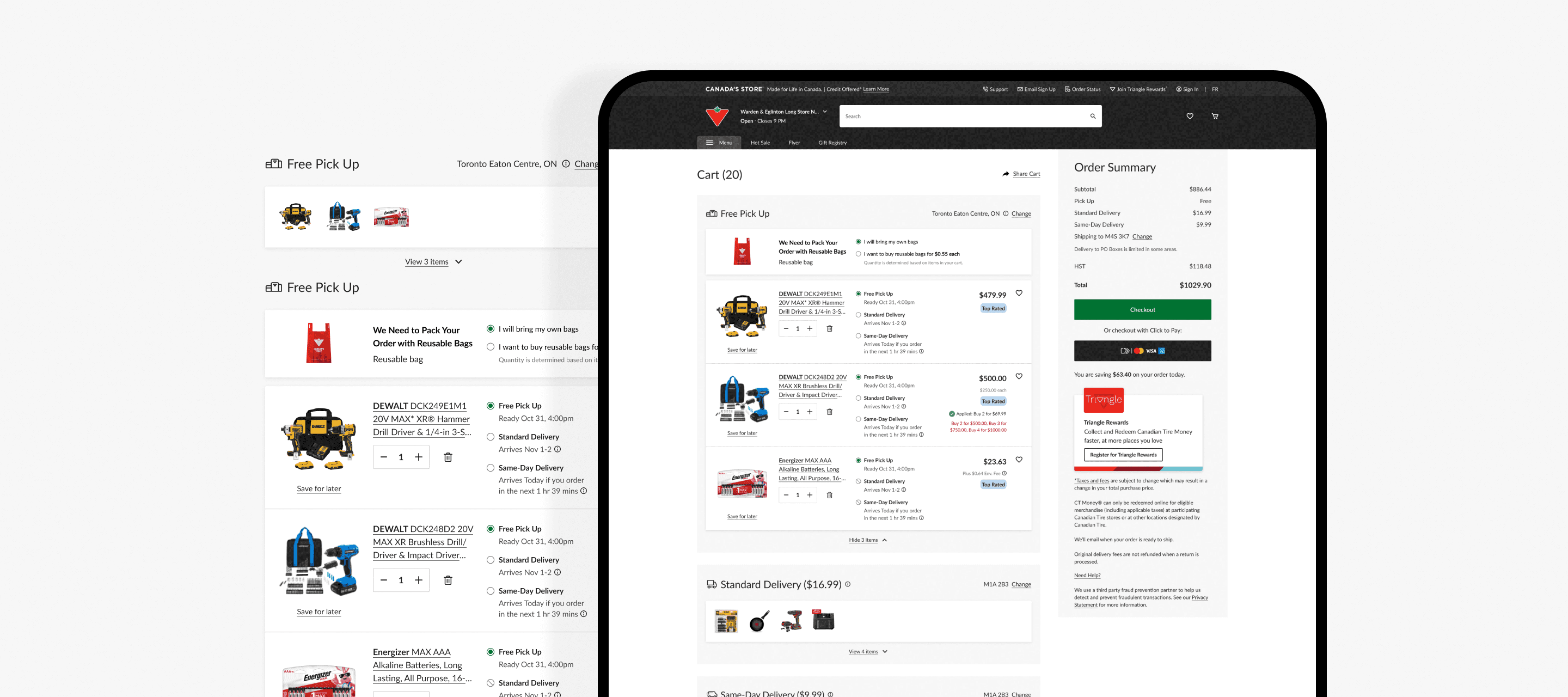 Validated through A/B testing over a 4-week period across all Canadian Tire banners. This measurable uplift confirms that the redesigned cart successfully removed critical friction points in the checkout flow. By improving visibility, simplifying fulfillment switching, and reducing cognitive load, users were able to make faster decisions and proceed to checkout with greater confidence.