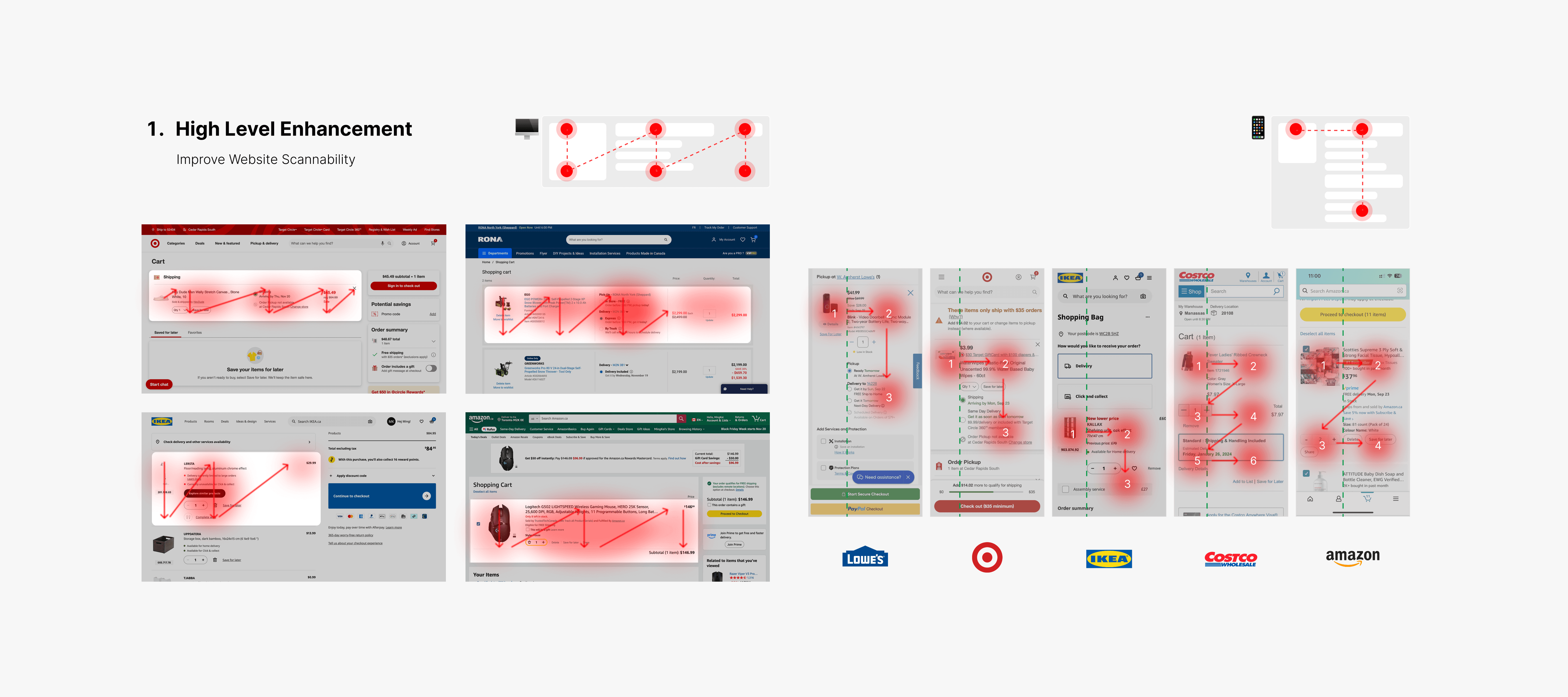 Users struggled to locate and switch fulfillment options within the cart Delivery information (date & fees) was not easily comparable Interaction points were not aligned with user expectations, causing hesitation Inconsistent patterns across banners increased cognitive load